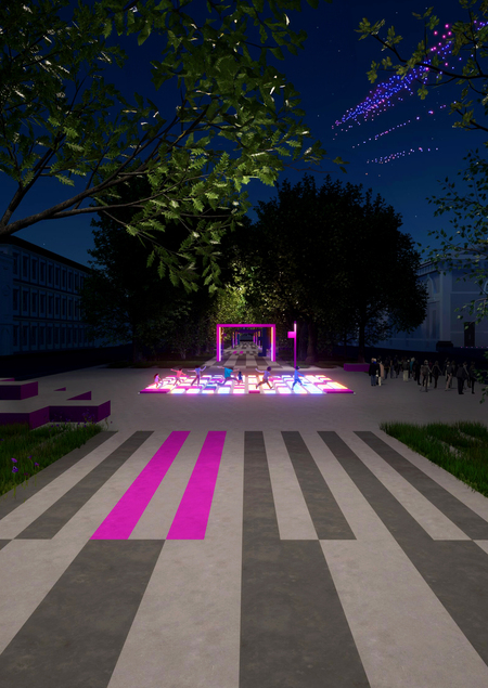 Сценарий 1. Прогулка по бульвару до входа в Музей 2. Открытие Музея программного искусства Algorithmus (просмотр экспозиции / временной выставки) 3. Шоу дронов