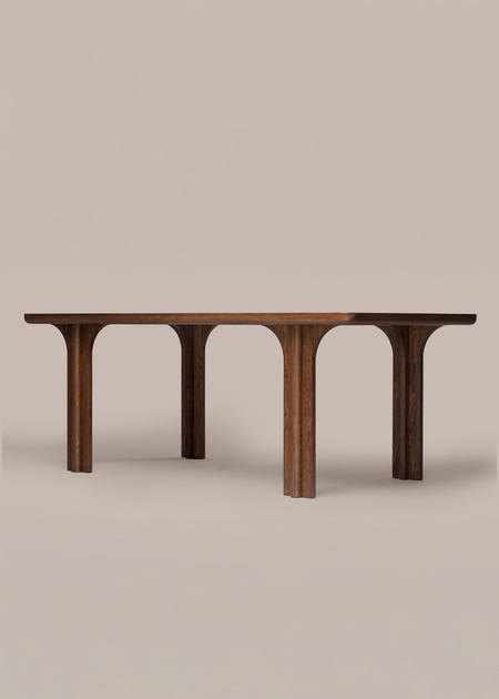 The PORTA dining tables are all about scale and presence. Pictured here is the six-person model — almost monumental, with its signature arched supports.