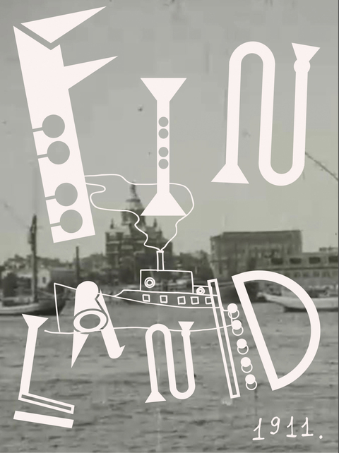 Елизавета Кожемякина, I курс магистратуры «Коммуникационный дизайн»: «Фильм „Финляндия“ не содержит какой-либо музыки или слов. Только кадры с путешествующей по Финляндии камеры. Однако не смотря на то, что никакого звукового сопровождения в этом фильме нет, ты все равно слышишь звучание страны, в гудении паромов и плеске морских волн о пристани и причалы, в гуле людей, которые шагают по улицам. Мне очень хотелось, чтобы плакат зазвучал. В создании плаката я использовала свой акцидентный шрифт, над которым работала в прошлом модуле. Некоторые его части могут напомнить трубы пароходов и паромов того времени».