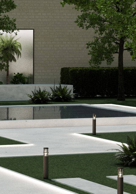 Открытый двор должен взаимодействовать с небом. Солнечные проекции, тени, отражения — это тоже архитектура. Минимальные архитектурные элементы — плоскости, модули, рамки — подчеркивают свет, а не заслоняют его.