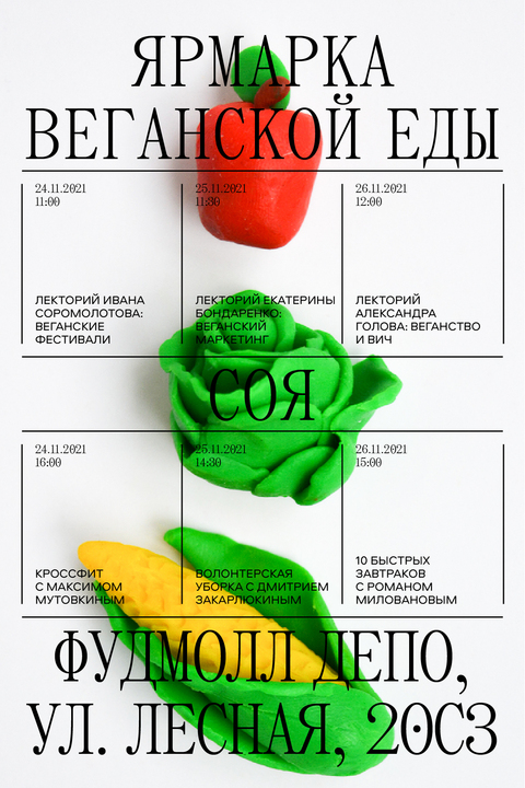 SOYA is a vegan food fair where the main element of the identity is plasticine vegetables.