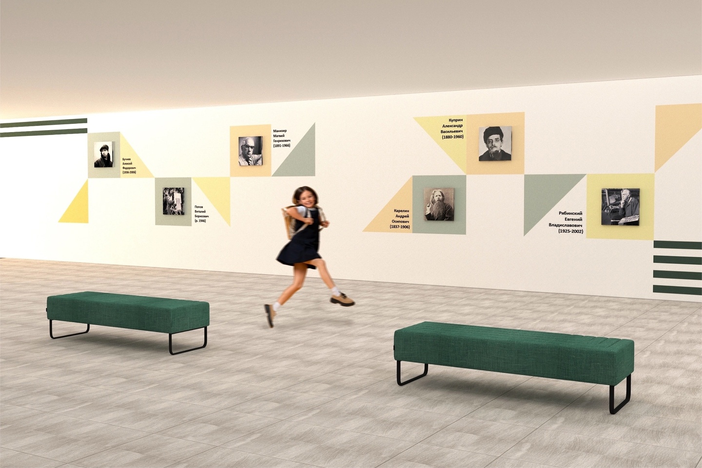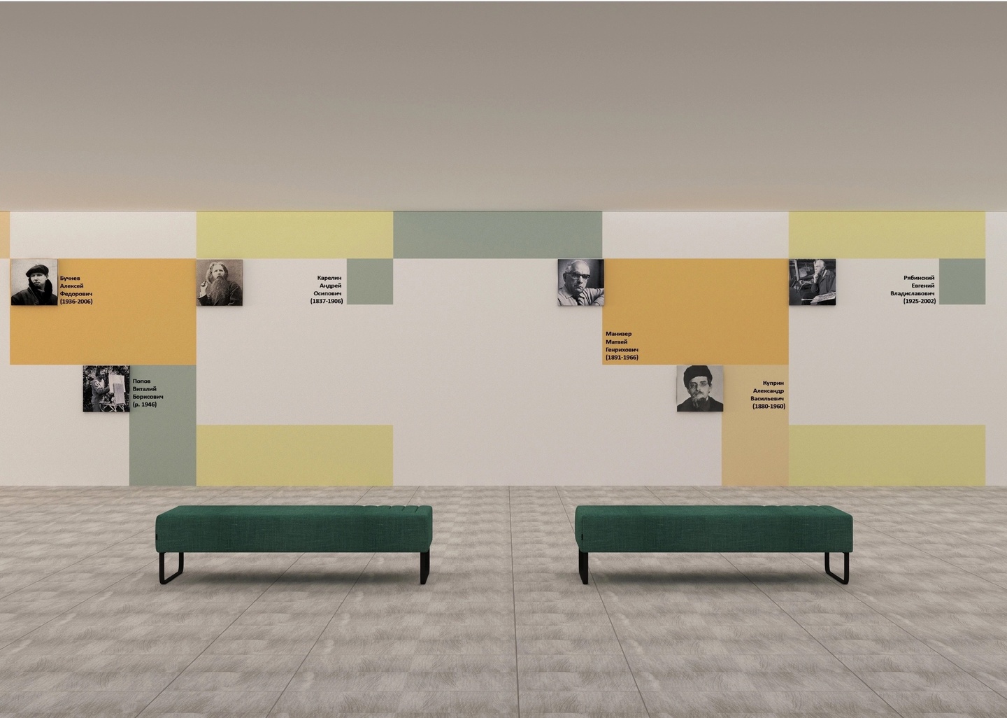 Информационная зона отражает портреты людей, имена которых связаны с развитием искусства в Котовске и Тамбове.