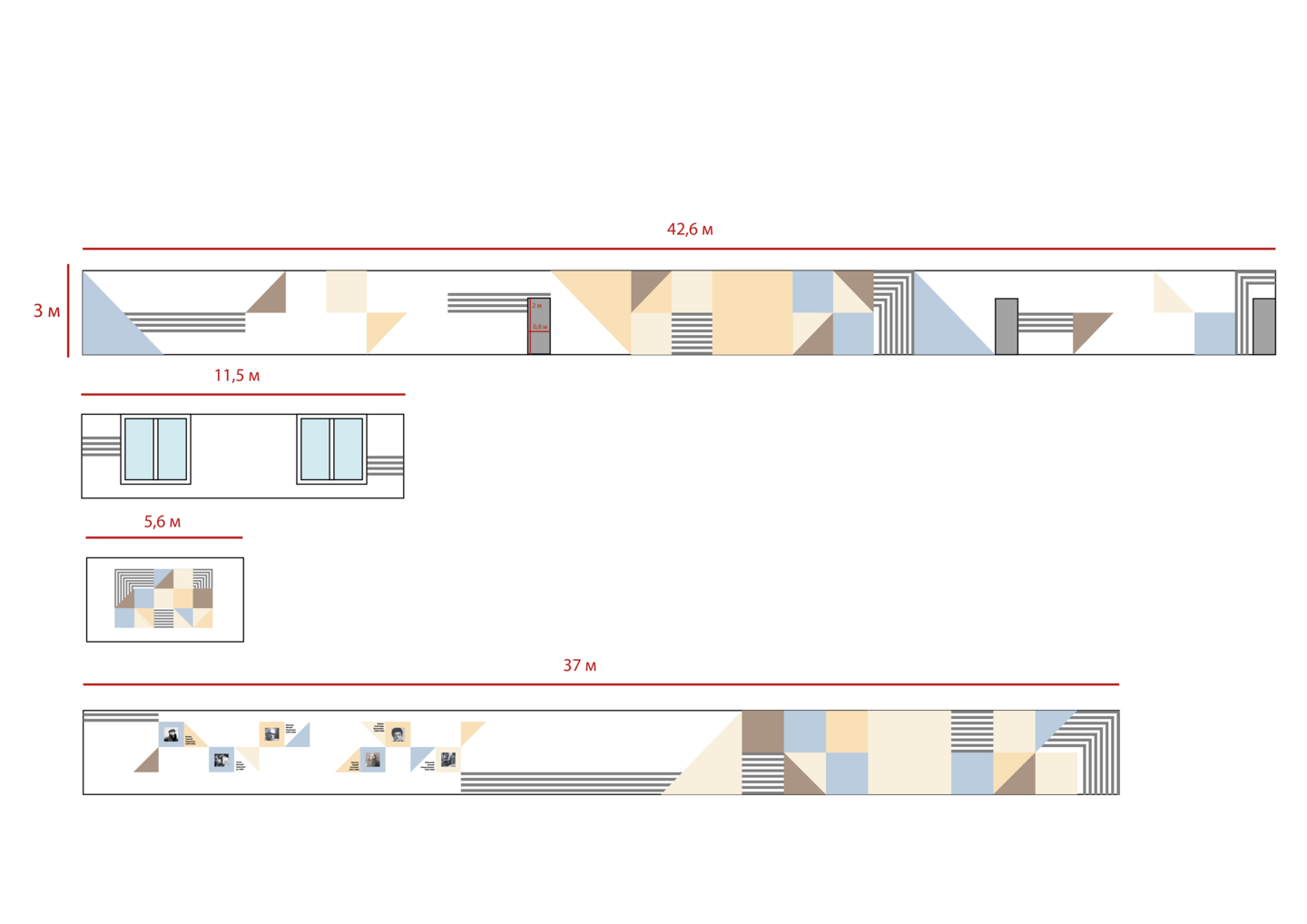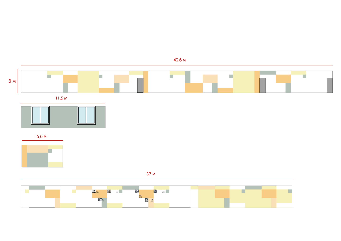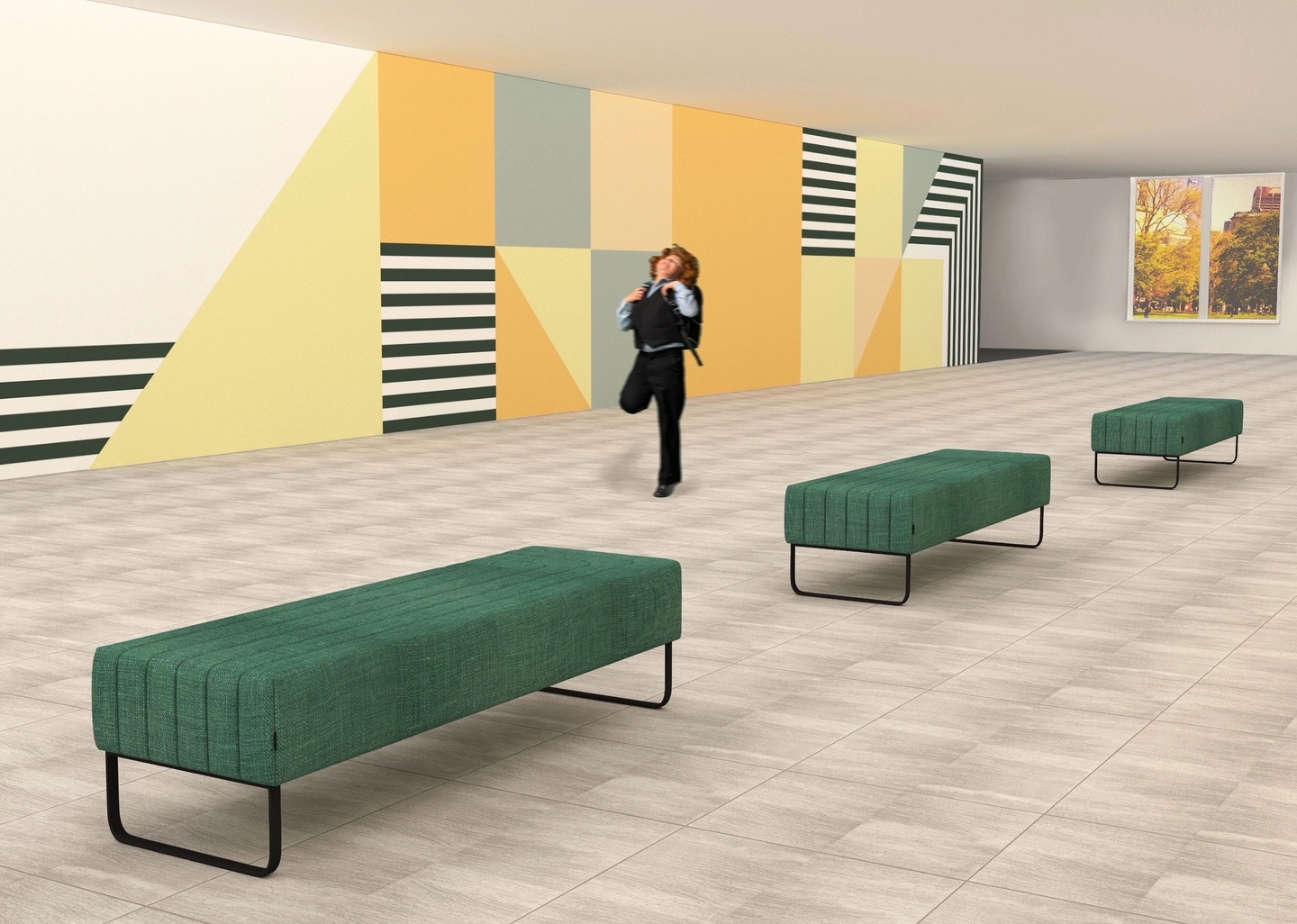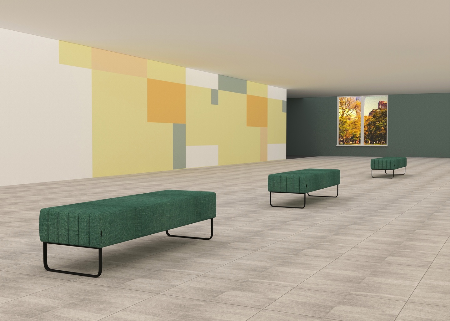 Цель: создать интересный интерьер рекреации в определённой цветовой гамме с использованием суперграфики и функционального зонирования.