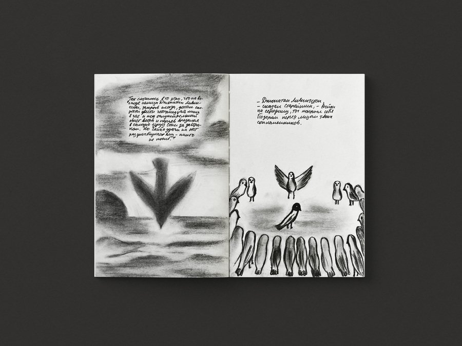 Также я решила изобразить Джонатана так, чтобы он действительно отличался от других. На протяжении всей книги прослеживается приём размытия, который относится к ассоциации с полётом — большая скорость и нечёткость.