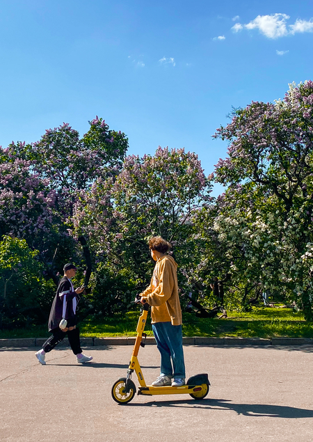 В рамках проекта мне захотелось попробовать себя в качестве уличного фотографа, поэтому в течение модуля я исследовала жизнь москвичей. В финале родилась серия стрит-фотографий про велосипедистов и самокатчиков на улицах Москвы.