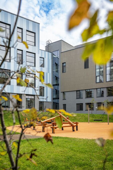 В этом проекте нам удалось реализовать несколько новшеств: 1. Вместо классических коридоров мы предложили большие рекреации, пригодные для разных типов активности: здесь можно организовать и библиотеку, и лекторий, и небольшую спортивную зону.