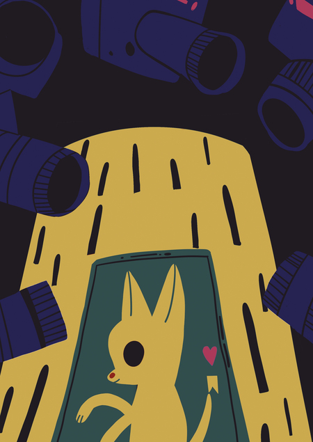 Серия из пяти иллюстраций на тему больших данных и нашей повседневности в технике шелкографии