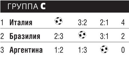 Полной неожиданностью завершился турнир в группе С, где итальянцы обыграли две сильнейшие латиноамериканские сборные: команды Аргентины и Бразилии. В матче с аргентинцами одной из важнейших составных частей успеха «скуадры адзурры» стала грубая опека Марадоны приставленным к нему защитником Джентиле. Пытаясь не дать сыграть молодой звезде, итальянец прибегал к наглым приемам, провокациям, ударам исподтишка. Румынский судья Райня безучастно смотрел на грязные проделки Джентиле, наказав его предупреждением лишь однажды — в самом начале матча. Решавший исход борьбы в группе поединок Италия — Бразилия любителями футбола и журналистами причислен к величайшим играм в истории чемпионатов мира.