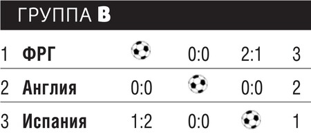 Хозяева первенства не сумели составить конкуренцию сборной ФРГ. Однако им удалось сдержать атаки англичан в матче на «Сантьяго Бернабеу», где гости явно чувствовали себя лучше хозяев. Отличную возможность открыть счет упустил в конце матча Киган, оказавшийся в одиночестве перед воротами испанцев, а сильный удар Брукинга со средней дистанции отразил голкипер Арконада. Результат 0:0 вывел в полуфинал немцев.