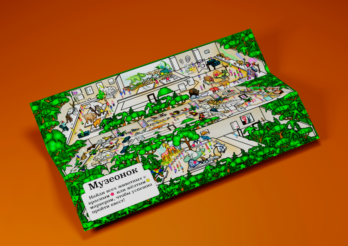 Ребёнок получает карту с двумя маршрутами на выбор и отправляется на поиски отмеченных экспонатов. Если выбор верный, игрушка загорается зелёным, если нет — красным. По завершении квеста она мигает разноцветными огнями, а накопленные баллы передаются на сервер через Wi-Fi. В зависимости от набранных очков ребёнок получает сувенир.