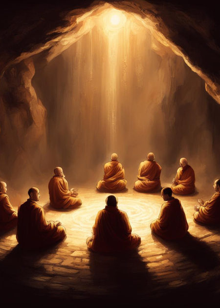 В один момент, семь могущественных монахов, терзаясь от жестокости и эгоизма человеческих душ, собрались покинуть родной город, удалиться от глаз людских и основать свое сообщество в лабиринтах пещеры. Избранные войны света, став отшельниками, увлеклись духовной практикой, посвятив себя молитве, изучению древних текстов и медитации. Забыв о мирских заботах, они стремились познать мировую гармонию и посвятить свою жизнь службе более высоким идеалам, затерявшихся в круговороте времени.