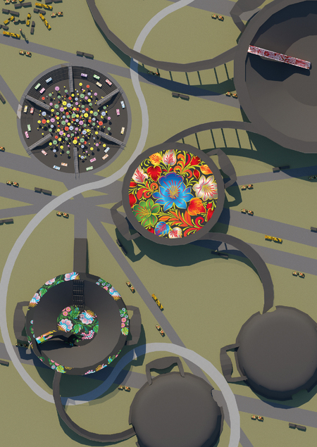 Данный проект представляет собой детский городок «Котлы». Детский городок находится в районе Котловка, поскольку район получил свое название от исторического села Котлы, тематика детского городка соотносится с местоположением. В проекте разработаны различные зоны развлечений и отдыха, существует зона с горками, с батутом, качелями, зона для игры в настольный теннис, а также зона отдыха, поляна с множеством грибов.