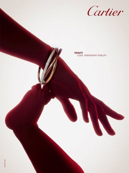 Рекламная кампания Cartier Love через использование фирменных цветов, символов и визуальных приёмов формирует образ украшений как символа прочных и разных видов любви (романтической, семейной, дружеской), что способствует расширению целевой аудитории и повышению лояльности к бренду.