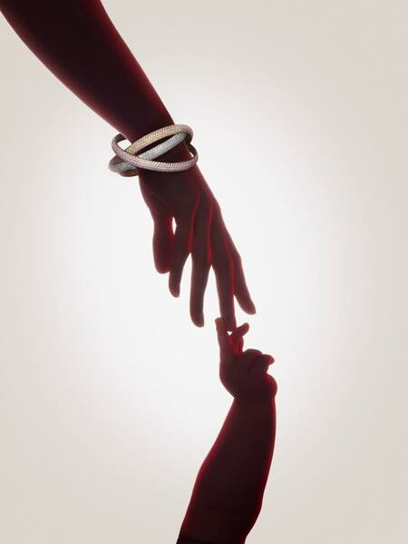 Особое внимание в рекламе уделяется красной нити, которая часто используется как дополнительный визуальный и символический элемент. Красная нить — это древний символ защиты, крепкой связи и судьбоносной связи между людьми. В контексте кампании Cartier она усиливает эмоциональное восприятие коллекции, подчёркивая идею неразрывных уз и вечной любви в широком смысле — будь то любовь к партнёру, семье или друзьям.