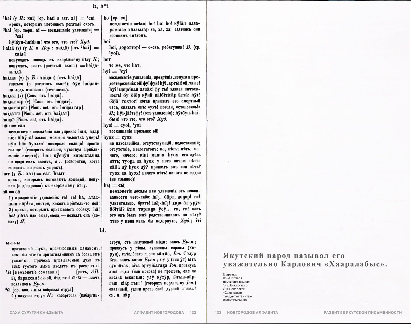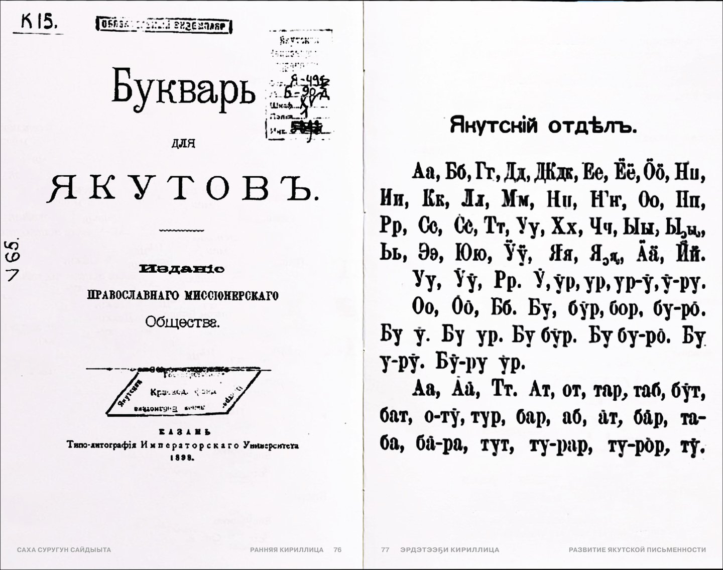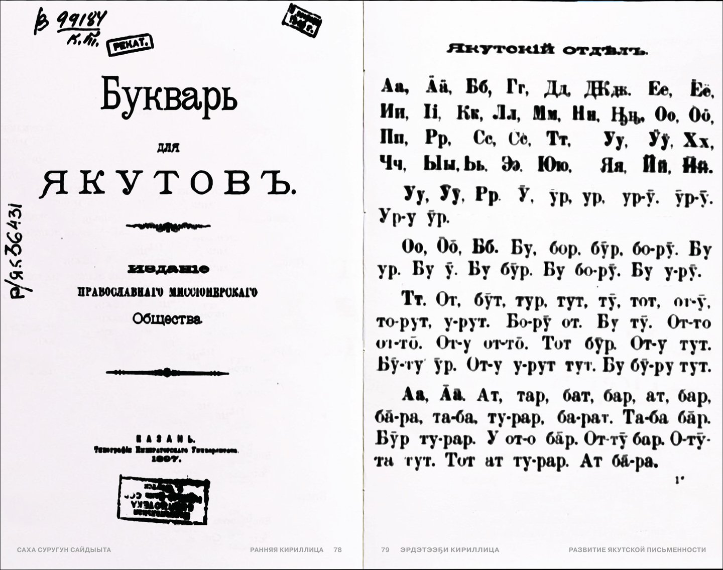 The entry into the book is the letters of the Yakut alphabet, which differ from the Russians and the words in which they are found.