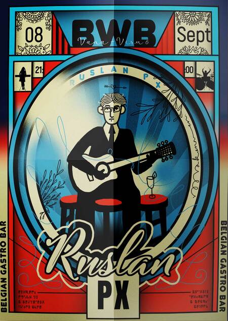 Персонаж с гитарой был сгенерирован отдельным ИИ-инструментом (durer.ai). Профиль я обучил скомбинировав работы художника Фернана Леже и на американских эмалированных барных вывесках.