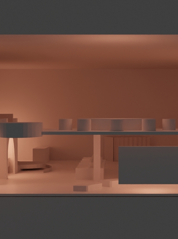 Кроме мебели, используемой для комфорта посетителей, в проекте фигурирует лестница дизайнерского оформления, по совместительству являющаяся и местом для хранения швейных материалов и личных вещей посетителей. Есть возможность использования пространства лестницы как место отдыха, т. к. большая площадь позволяет не мешать поднимающимся на второй этаж мастерам.