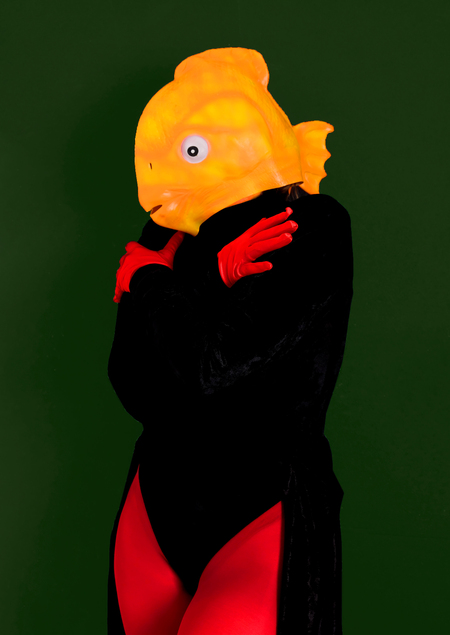 Мой манифест — процесс обретения голоса. Я использую образ рыбы и поговорки про нее, тем самым приближая свой текст к сказочности, вступая в диалог с народным языком. Броские цвета и костюм иллюстрируют мое желание докричаться до зрителя.