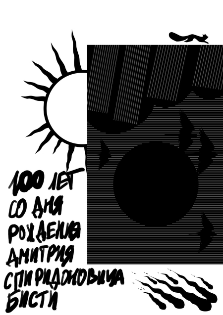 In the creation of the poster, recognized graphics from the artist ' s work were applied as well as elements of soupermatism, as this direction plays a significant role in the art of the 20th century and is reflected in the works of Dmitry Spiridonovich.