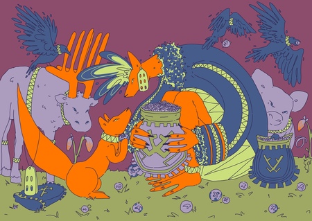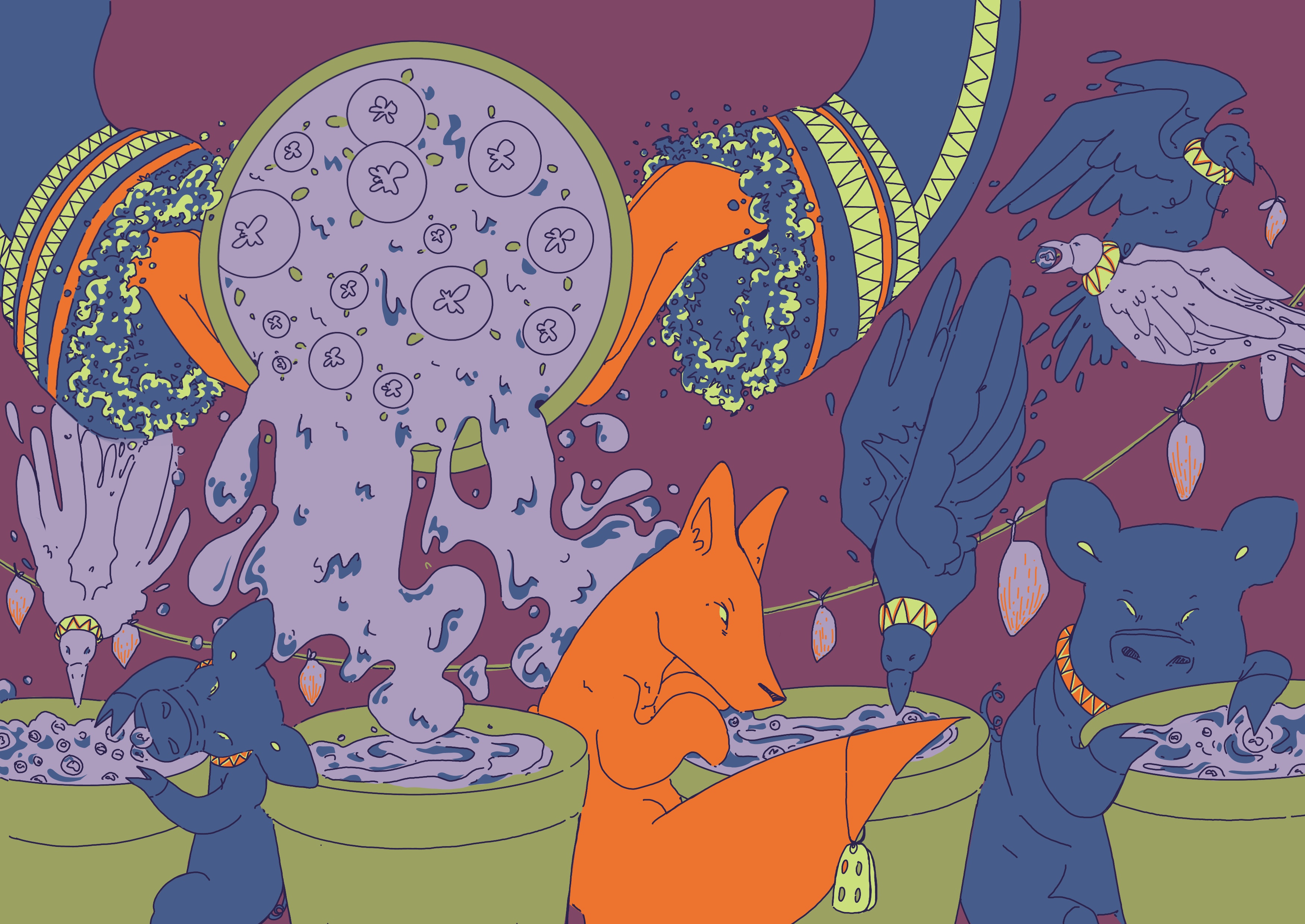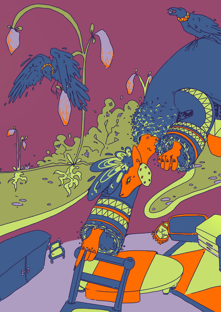 Серия иллюстраций для оформления колледжа в Салехарде. В основу графических элементов легли природные и народные особенности этой местности, а сами картинки не подразумевают учебную тематику, чтобы морально разгрузить студентов.