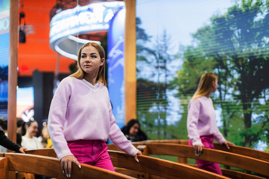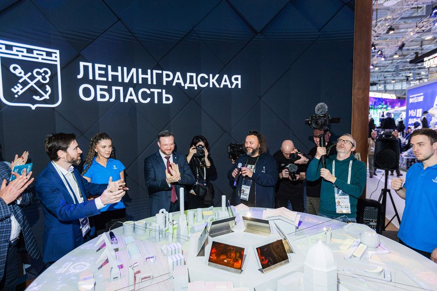 Центральная часть стенда —интерактивный стол, где гости могут узнать о регионе и увидеть, как он изменился за минувшие годы. Здесь же посетители могут построить модели знаковых промышленных и культурных объектов Ленинградской области — уменьшенную копию Выборгского замка и самый большой на Балтике порт Усть-Луга или всесезонный курорт «Игора».