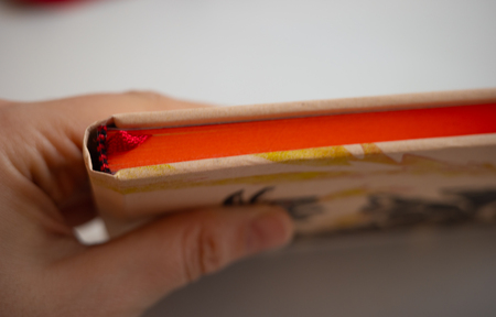 Блокнот целиком выполнен вручную. Была сохранена оригинальная композиция и альбомная ориентация открытки. Основа — бумага Palatina 120 гр. с повышенным содержанием хлопка. Обложка — цифровая печать на дизайнерской экобумаге с добавлением кожи. Блокнот сшит вручную, что позволяет открывать блокнот на 180 градусов без повреждения блока. Блокнот имеет ляссе и капталы. Размеры блокнота 195×110×15, 64 листа (128 страниц)