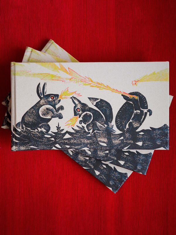 Блокнот-скетчбук «Весело, весело встретим Новый год». В основу легла открытка, созданная к наступлению 2020 года. Идея состояла в соединении эстетики советских новогодних мультифильмов и популярных фильмов-катастроф о монстрах. Техника — коллаграфия с дорисовкой. В следующие годы изображение дополнялось — появилась обратная сторона.