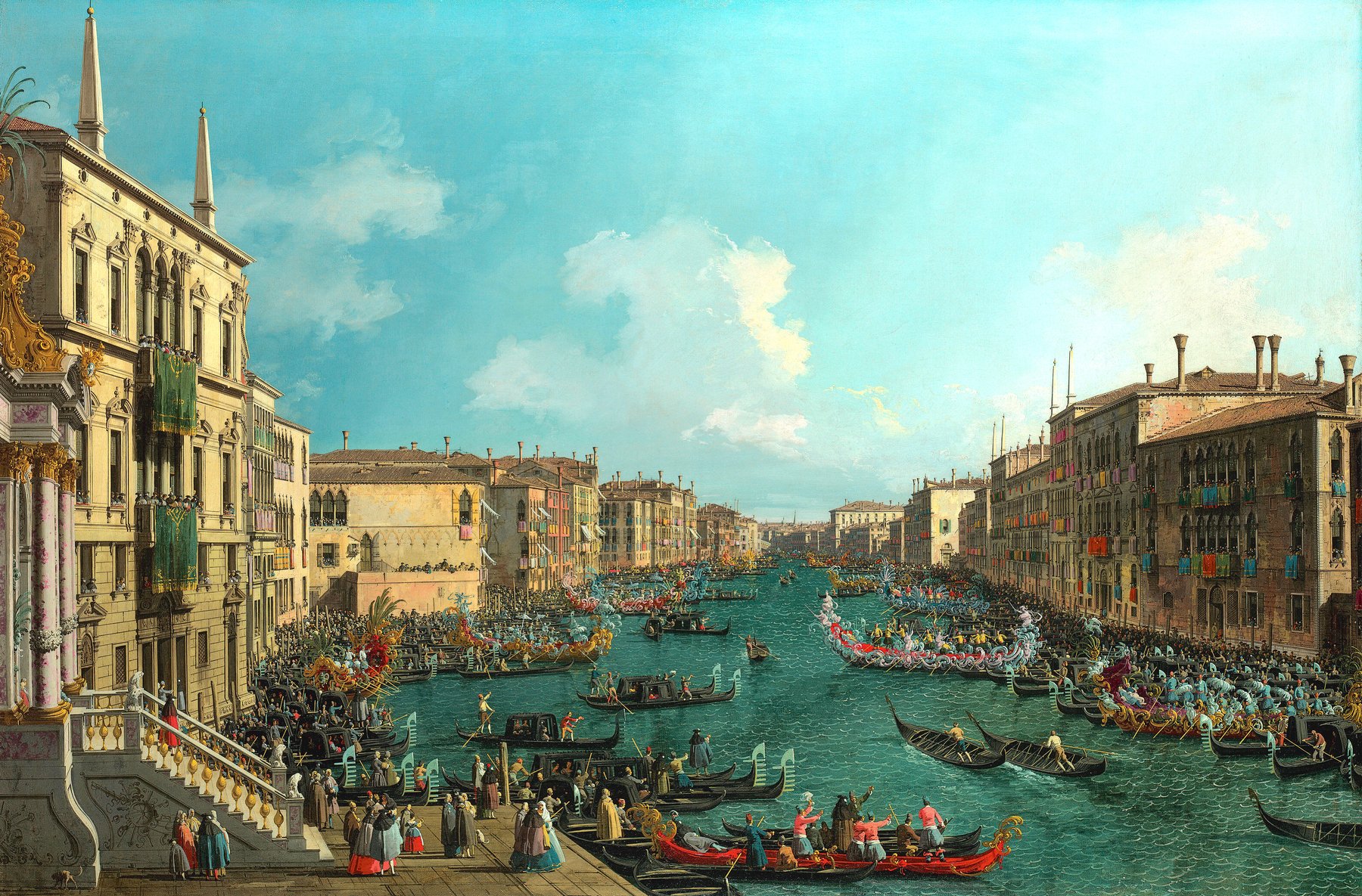 Каналетто (настоящее имя — Джованни Антонио Каналь) — итальянский живописец, рисовальщик, мастер офорта, представитель венецианского жанра «ведута», изображающего городской пейзаж и местные архитектурные достопримечательности. Жанр был широко распространен в художественной среде в XVIII веке. Среди ярких работ направления — пейзаж «Регата на Гранд-канале», выполненный Каналетто около 1740 года и демонстрирующий грандиозный вид на Гранд-канал в Венеции во время ежегодного парада и соревнований регат, проводимого 2 февраля и привлекающего большое количество людей.