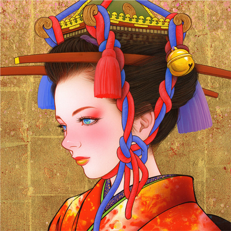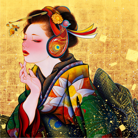 Ёсиясу Тамура — знаменитый японский художник и мангака, известный своим стилем, который объединяет элементы фантазии и причудливости. Его героини, гейши в ярких кимоно, обладают как японскими, так и западными чертами, а их образы часто оформлены на фоне сусального золота.