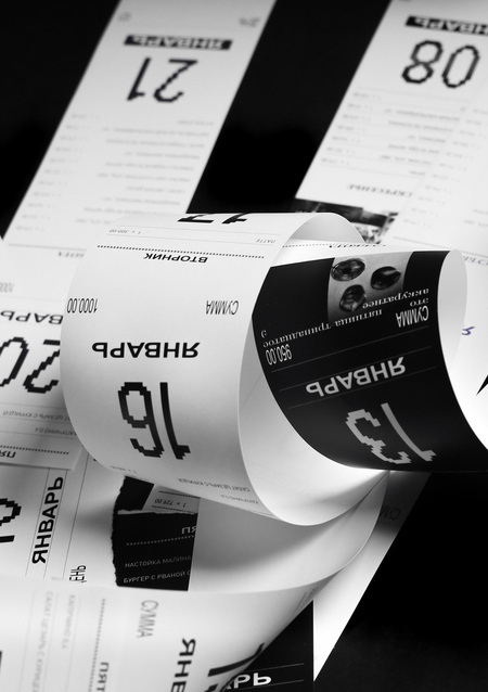 Ленточный отрывной численник на 365 дней, выполненный в виде чековой ленты посвящен ностальгии по еще не успевшему уйти в прошлое явлению — бумажным чекам.