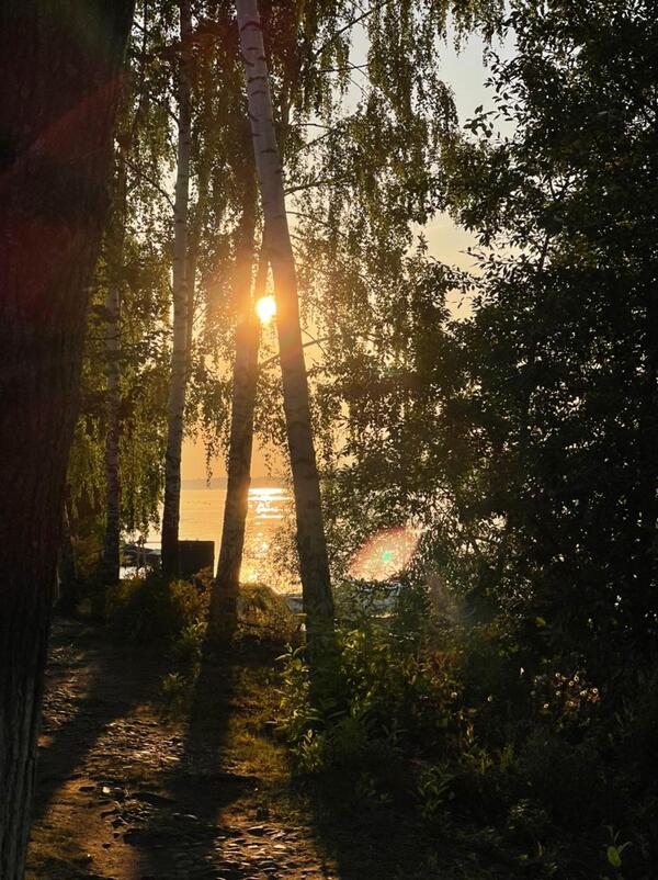 Вечером на набережной города стоит тишина. Подходишь к самому краю волжского берега — и тебя захватывает ночная темнота. На другом берегу напротив Плёса — всего одна маленькая деревня, и редко где-то мигнёт крохотный огонёк. Только звёзды ярко светят над Волгой. Постоишь пять минут — и кажется, что ты в прихожей в космос…