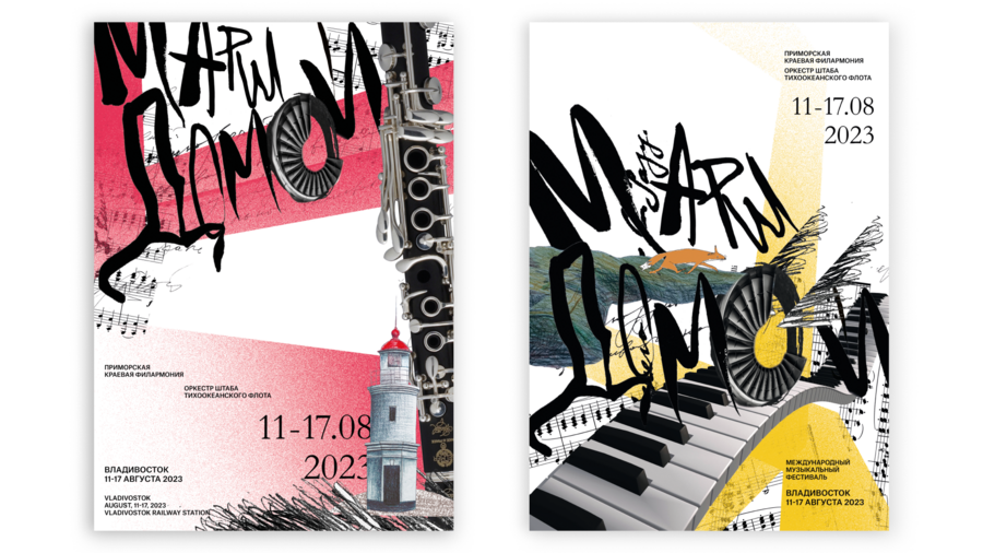 На мероприятии присутствуют оркестровые коллективы, исполняющие классическую музыку. Поэтому, для стабилизации динамичности фестиваля принято решение добавить заголовочный антиквенный шрифт для рекламных носителей. Антиква характерна для консерваторий и относит к чему-то классическому и элегантному. Наборным нейтральным шрифтом выбран гротеск.