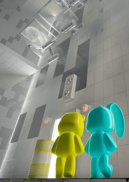 На следующем уровне игроки находятся на разных этажах, но при этом могут передавать друг-другу объекты. Используя желтую и голубую краску для того, чтобы притягивать и отталкивать предеметы, игроки распределяют объекты по местам, стремясь уложиться в отведенное для этого время.