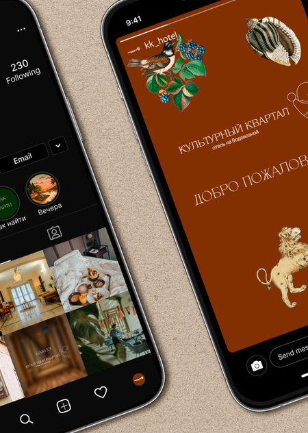 Типографика была выбрана в двух вариантах: та, что будет использоваться в логотипе и заголовках, и та, что для чтения. Отель с историческим контекстом, но он все равно уходит в современность и старается общаться со своими потребителями на одном языке.
