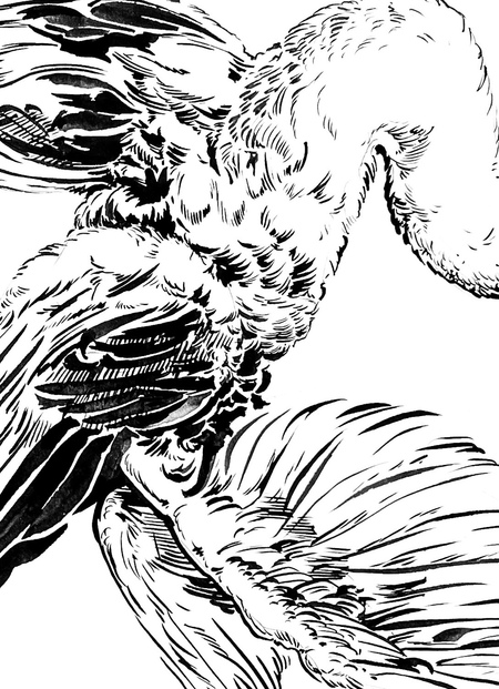 Что касается техники, было важно передать симбиоз различных фактур — пуховых и маховых перьев, жесткого и мягкого, прямого и изогнутого. Я стремился создать гармоничное сочетание этих элементов, чтобы зритель мог ощутить не только визуальную красоту, но и текстурное разнообразие. Каждый штрих и каждая деталь были важны для передачи уникальности каждой птицы, ее характера и эмоционального состояния.