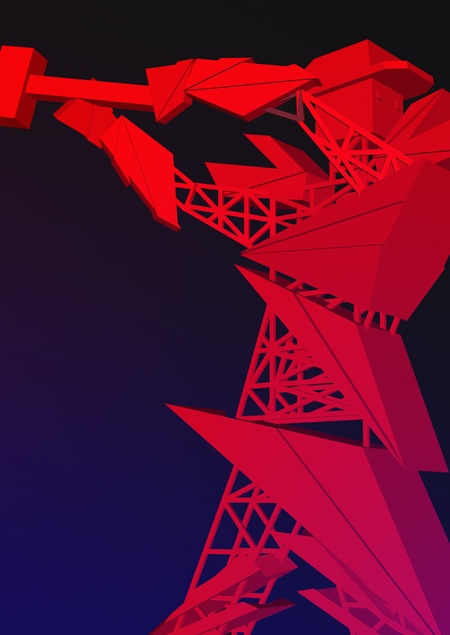 Прототипом для векторного перевода послужил 8-й графический рисунок из цикла «Сказки индустрии» книги «Архитектурные фантазии. 101 композиция в красках» Чернихова, а именно открытая фермовая композиция транспортеров, 1933 года.