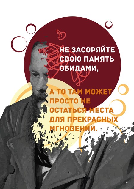 Плакат «Меньше обид…» стремится передать смысл цитаты Ф. М. Достоевского с помощью цвета.