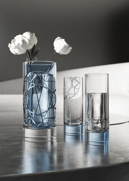 CERCLÉ включает в себя набор, состоящий из вазы для цветов и двух бокалов «хайбол» из хрусталя.