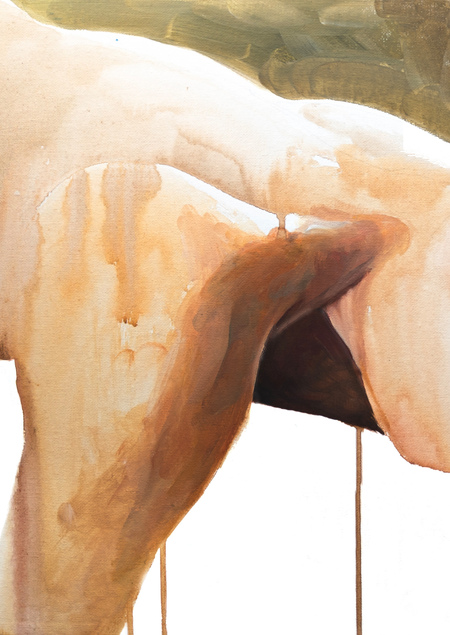 Я очень устала осенью и решила понаблюдать, за этим состоянием. Уставшее тело имеет другую пластику — на её формирование влияет пространство, в котором находится человек. Усталость давит, заставляет стремиться к горизонтальному положению. На теле и одежде образуются складки. Они становятся для меня маркером усталости.