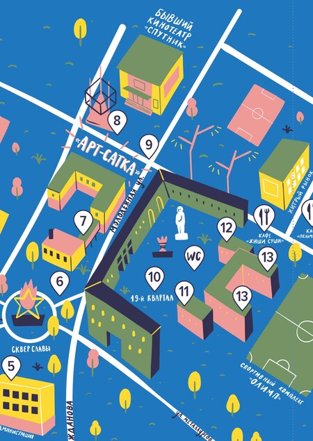 Еще одним проектом, осуществленным совместно «Арт-саткой» и Лабораторией дизайна стало создание оригинального буклета — пешеходного маршрута «Сатка вокруг „Арт-сатки“. В маршрут были включены ключевые достопримечательности и арт-объекты центра Сатки — от памятников времён СССР до современных арт-объектов, созданных в рамках международных фестивалей архитектуры и уличного искусства „Моя Сатка“, Satka Street Art Fest и совместных резиденций с Уральской индустриальной биеннале, а также объекты градообразующего предприятия „Магнезит“.