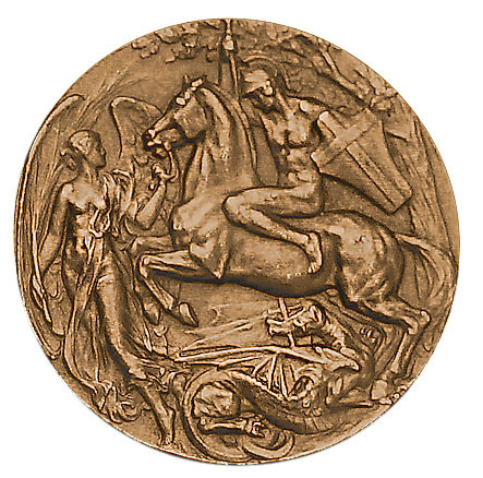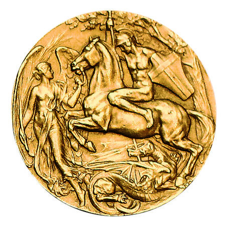 Реверс: покровитель Англии Святой Георгий, поражающий копьем дракона, и богиня победы Ника с поднятой в приветствии левой рукой и пальмовой ветвью в правой. На гурте медали выгравирован вид спорта, за победу в котором она предназначалась.