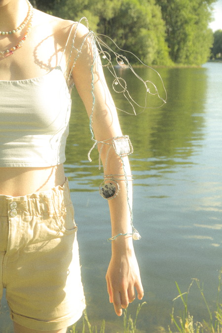 Все объекты подвешивались в пространстве галлереи рядом с винтажными шароскопами. В каждом шароскопе находилась фотография объекта на теле из нашей фотосессии — как призыв не бояться потрогать объект, и как возможность ностальгического интерактива с разглядыванием и соприкосновения с историей.
