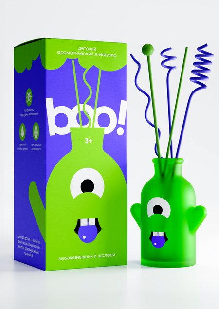 Whoo! — a unique diffuse line for the kids. It’s your little friend who scares off germs, fears and nightmares from your baby. Every package of Boo!It’s in the form of a nice monster who’s not only gonna be a healthy helper, but also an ornament for the children’s room.