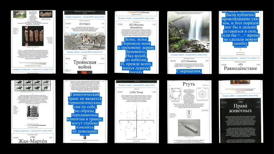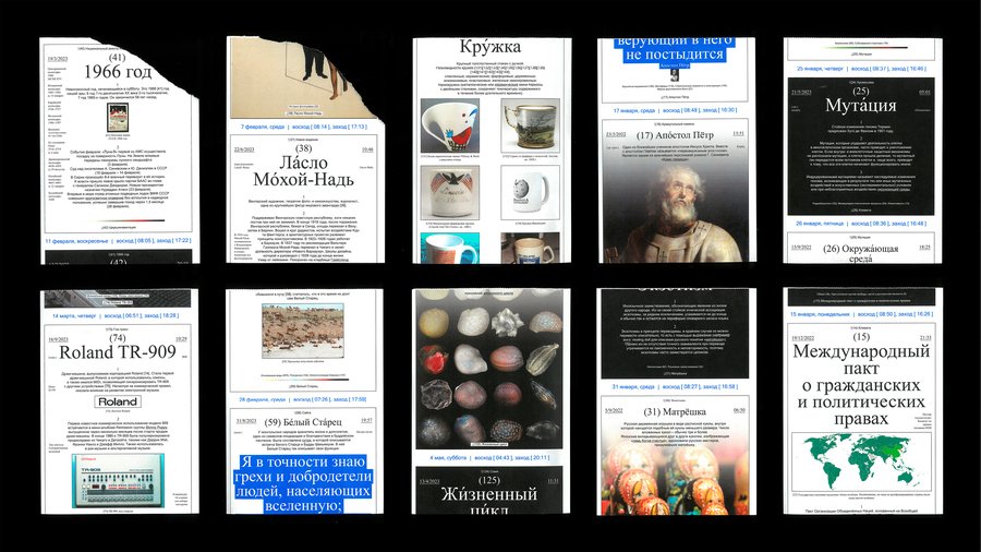 Календарь наполняют вики-статьи четырёх типов, безгранично перетекающие со страницы на страницу: общие статьи, текстовые статьи, статьи-изображения и статьи-цитаты.