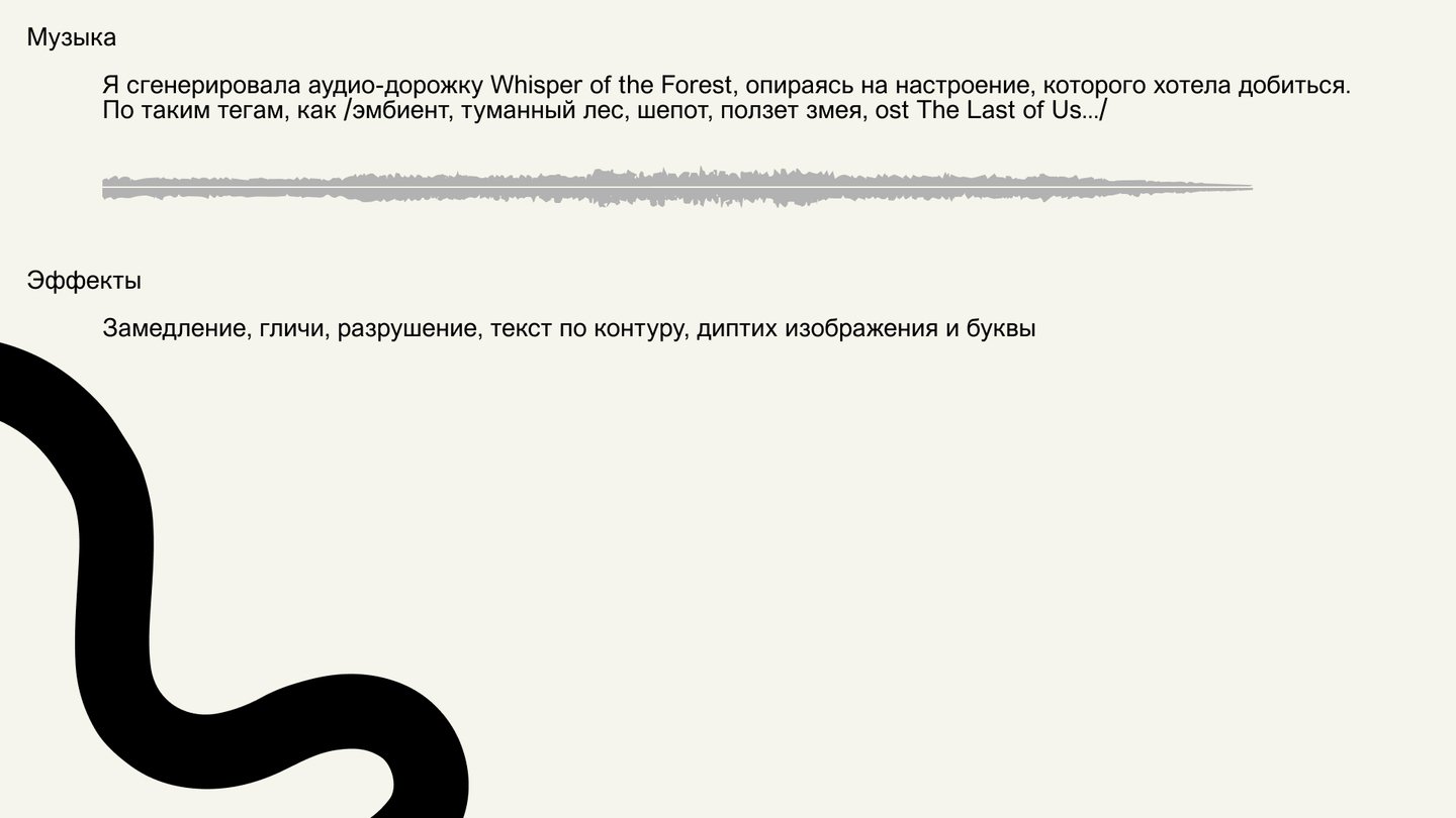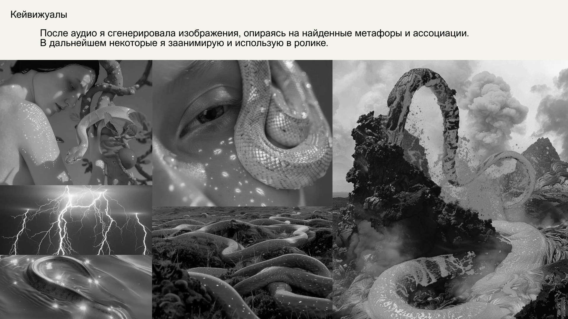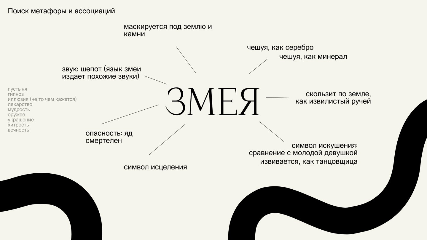Деконструкции образа змеи, поиск метафор, настроения, музыки, чувств и сюжета.