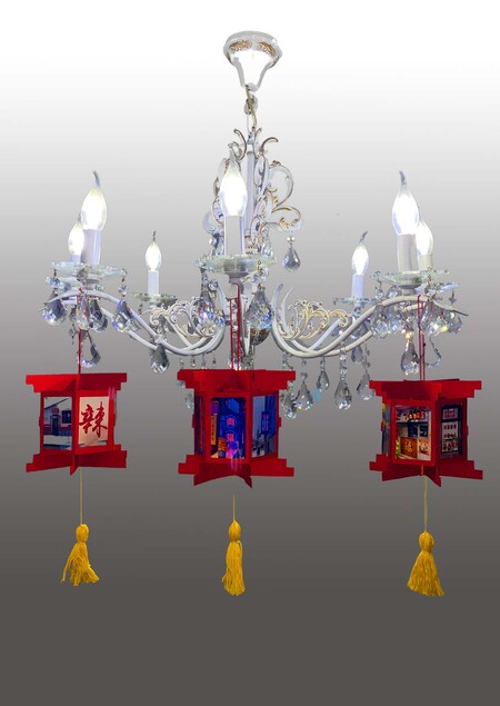 Сама инсталляция представляет собой китайские фонарики на люстре, я использовал этот метод представления как отражение иностранной пренадлежности, совсем не похожей на окружающий меня мир сейчас и как сильно я отличаюсь от внешнего мира.