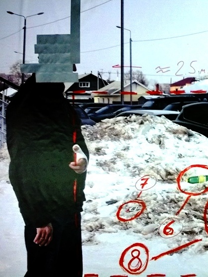 Я пригласил для участия в исследовании двух влюбленных. Определил несколько дистанций между людьми. Изъял артефакты из пространства лежащего между любовниками (отмечены на фото).