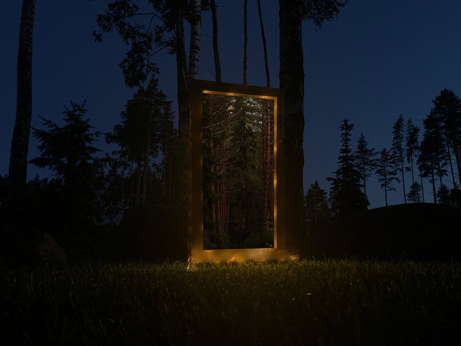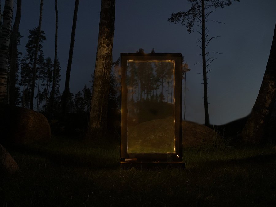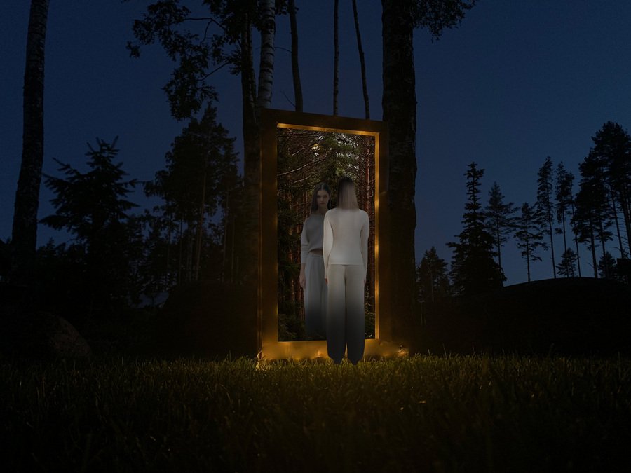 Объект выглядит как зеркало, которое с помощью освещения и разной близости человека от него передает три вида восприятия по очереди. Подходя близко человек фокусирует взгляд лишь на себе, поворачивая зеркало стеклянной стороной, зритель наблюдает окружающий мир, а отойдя чуть дальше от зеркала, посетитель видит себя в единении с природой. Также объект можно перемещать по парку, чтобы наблюдать смену пейзажа, глядя сквозь с текло и смотрясь в отражение.
