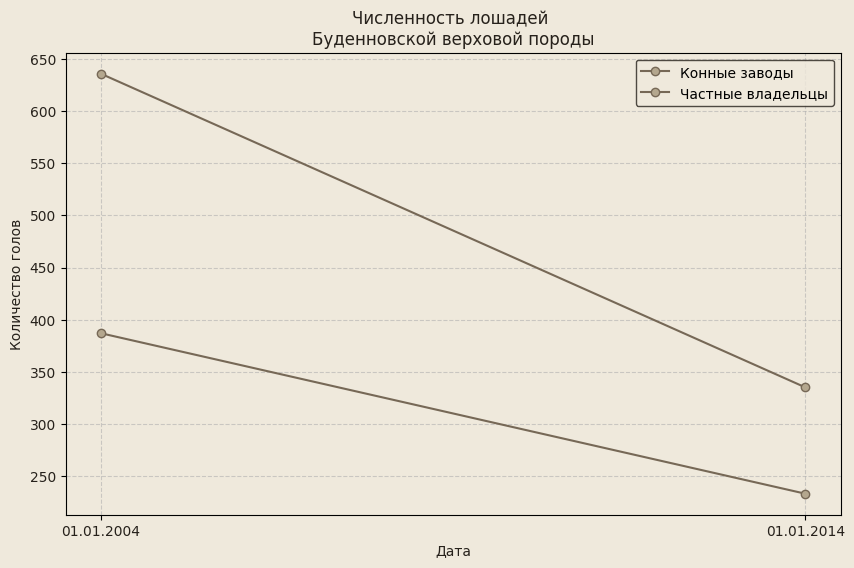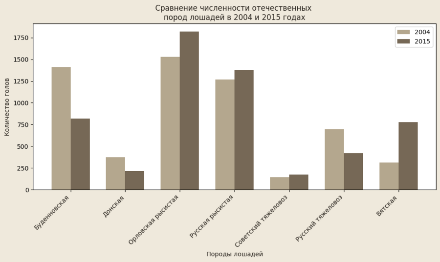 Диаграмма сравнения численности голов в зависимости от породы лошади