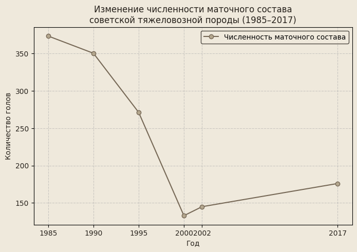 - Очистку и структурирование информации. - Построение временных рядов численности пород. - Выявление трендов и их интерпретацию.Эти данные представляют особую ценность, так как позволяют оценить предпочтения в конном мире, отношение к национальным породам и заинтересованность в их сохранении. Лошади, выведенные в России, являются частью культурного наследия, и анализ их количества помогает понять, насколько их ценят и поддерживают сегодня.